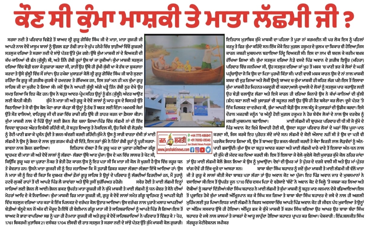 ਸਰਬੰਸਦਾਨੀ ਸ੍ਰੀ ਗੁਰੂ ਗੋਬਿੰਦ ਸਿੰਘ ਜੀ"-ਜਸਵੀਰ ਸ਼ਰਮਾ ਦੱਦਾਹੂਰ