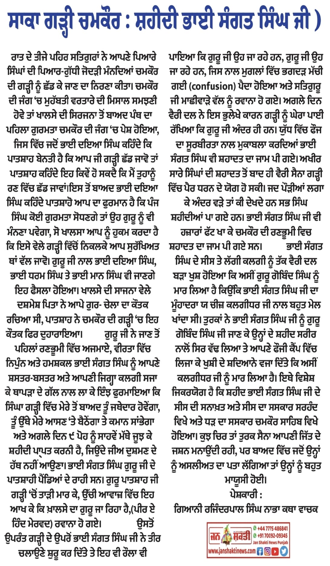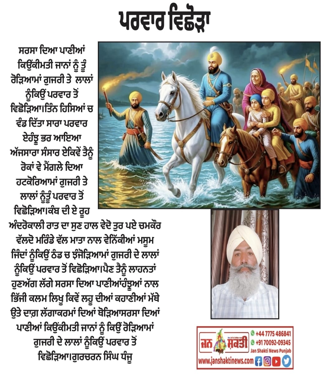 ਸਰਬੰਸਦਾਨੀ ਸ੍ਰੀ ਗੁਰੂ ਗੋਬਿੰਦ ਸਿੰਘ ਜੀ"-ਜਸਵੀਰ ਸ਼ਰਮਾ ਦੱਦਾਹੂਰ